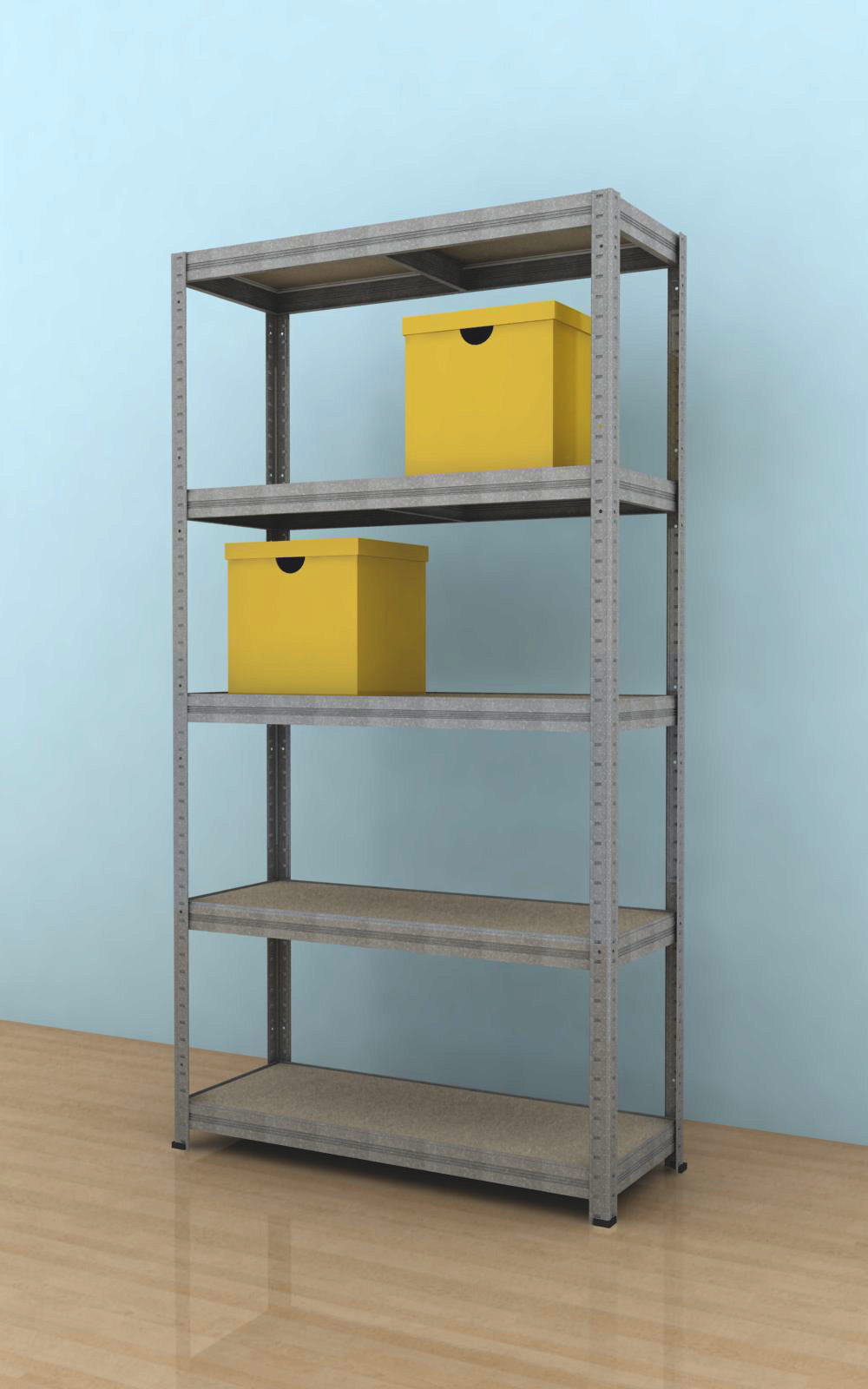 Kovový regál Futur s dřevotřískovými policemi má využití jak v domácnostech ( garáže, sklepy, pracovny, dílny, spíže), tak ve firmách (dílny, sklady, archivy, prodejny) i v kancelářích (archivy, sklady). Skládá se snadno, bez použití šroubů a to díky unikátnímu systému spojování nosníků. V balení regálu je 5 kusů výztuh, které se vkládají pod každou polici. Police jsou vyrobeny ze surové dřevotřískové desky. Vysoce stabilní kovová konstrukce je vyrobena z ocelového plechu. Nosnost regálu je 350kg na jednu polici a výška regálu je 1965 mm. Regál je nutno ukotvit ke zdi.
