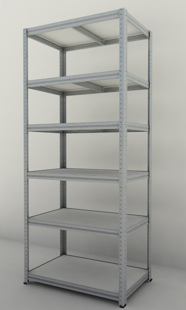 V balení regálu je 6 kusů výztuh, které se vkládají pod každou polici. Police jsou vyrobeny ze surové dřevotřískové desky. Vysoce stabilní kovová konstrukce je vyrobena z ocelového plechu.