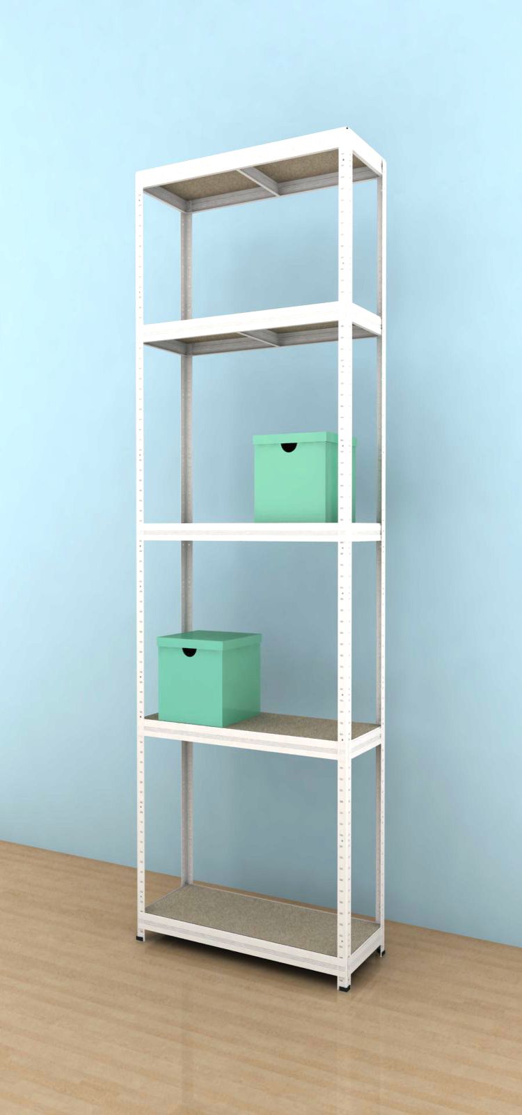 Kovový regál Futur s dřevotřískovými policemi má využití jak v domácnostech ( garáže, sklepy, pracovny, dílny, spíže), tak ve firmách (dílny, sklady, archivy, prodejny) i v kancelářích (archivy, sklady). Skláda se snadno, bez použití šrobů a to díky unikátnímu systému spojování nosníků. V balení regálu je 5 kusů výztuh, které se vkládají pod každou polici. Police jsou vyrobeny ze surové dřevotřískové desky. Vysoce stabilní kovová konstrukce je vyrobena z ocelového plechu. Nosnost regálu je 350kg na jednu polici a výška regálu je 2400 mm. Regál je nutno ukotvit ke zdi.