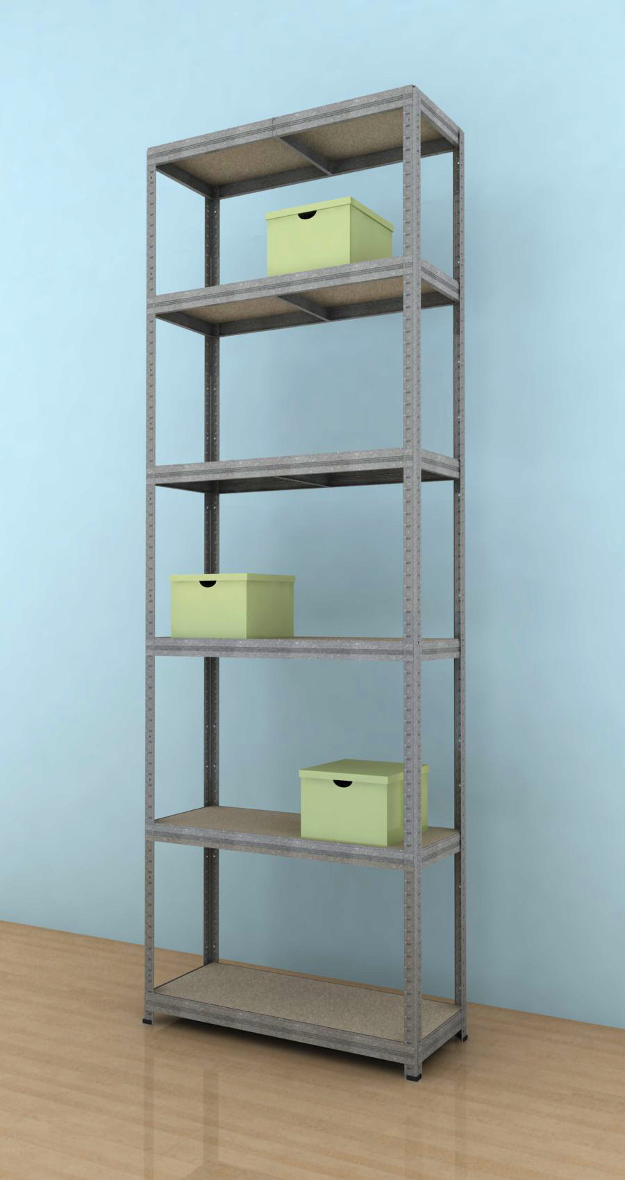 Kovový regál Futur s dřevotřískovými policemi má využití jak v domácnostech ( garáže, sklepy, pracovny, dílny, spíže), tak ve firmách (dílny, sklady, archivy, prodejny) i v kancelářích (archivy, sklady). Skláda se snadno, bez použití šrobů a to díky unikátnímu systému spojování nosníků. V balení regálu je 6 kusů výztuh, které se vkládají pod každou polici. Police jsou vyrobeny ze surové dřevotřískové desky. Vysoce stabilní kovová konstrukce je vyrobena z ocelového plechu. Nosnost regálu je 350kg na jednu polici a výška regálu je 2700 mm. Regál je nutno ukotvit ke zdi.