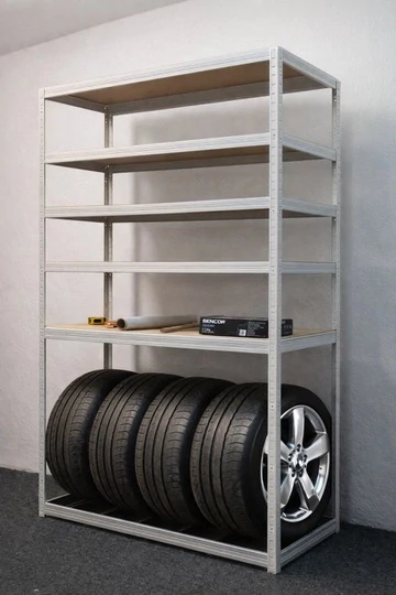 Regál na pneumatiky SUV 2100x1200x600/5, bílýSkladem6 455 Kč/ ks5 335 Kč bez DPH